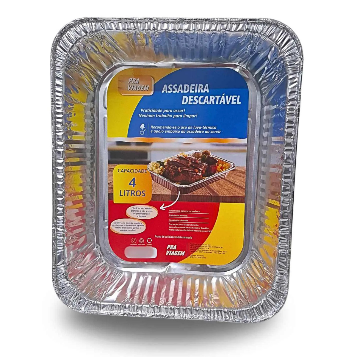 Assadeira Descartável Alumínio Retangular Natal Fim de Ano Ceia 4LTS Pra Viagem