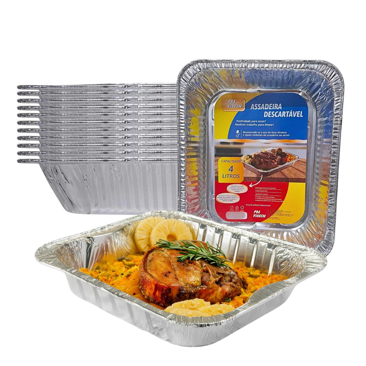 A Assadeira Descartável de Alumínio Retangular 4 Litros Pra Viagem é perfeita para o preparo. armazenamento e transporte de alimentos com praticidade e segurança. Ideal para ceias de Natal. Ano Novo. churrascos. marmitas e eventos. ela facilita o dia a dia sem abrir mão da qualidade.