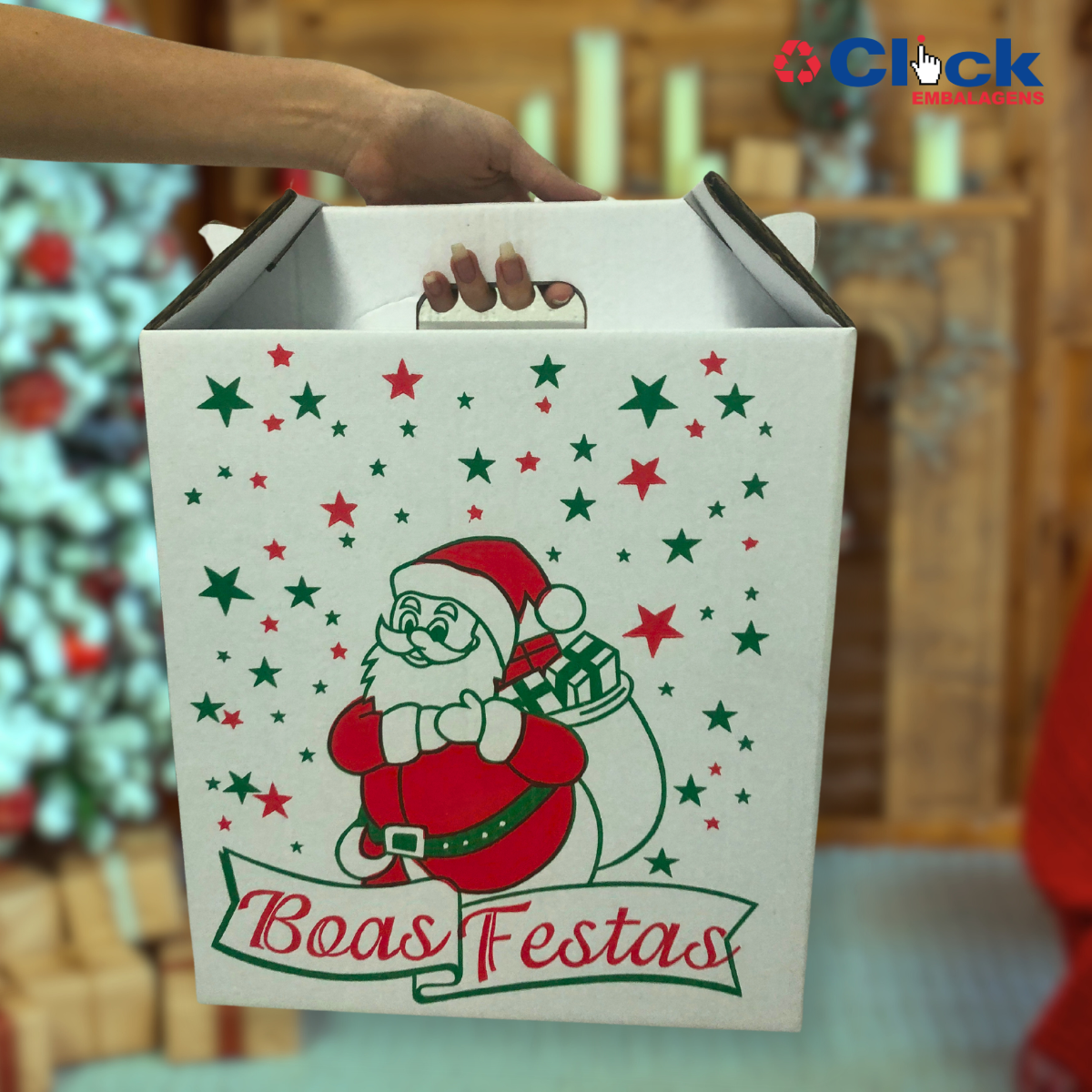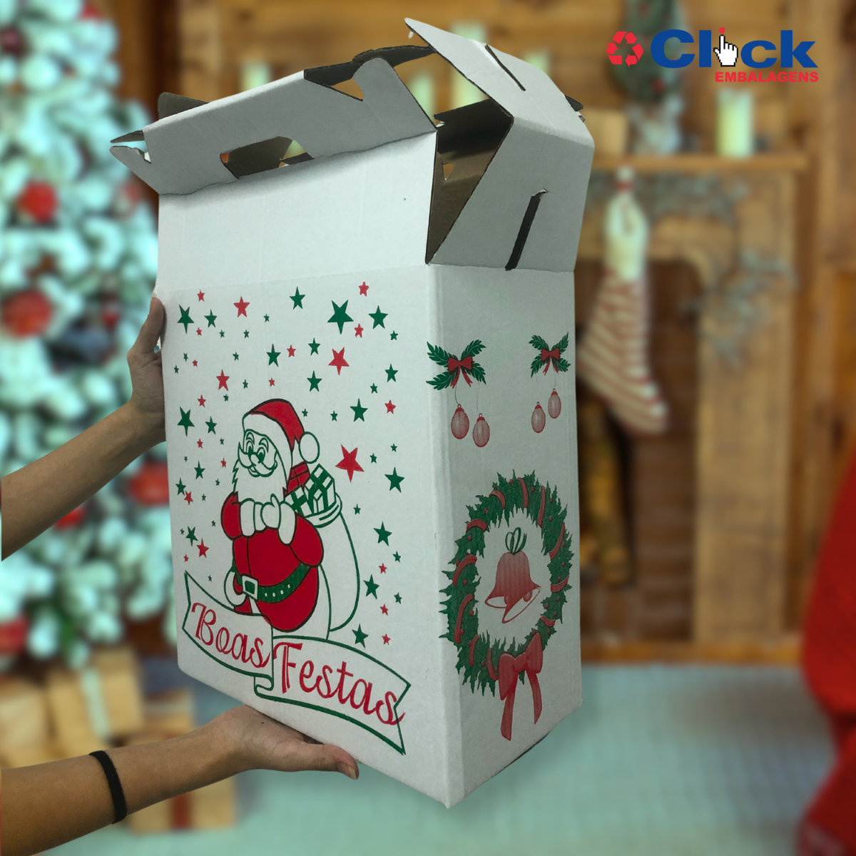Caixa Papelão Cesta Transporte de Natal Branca Papai Noel Boas Festas