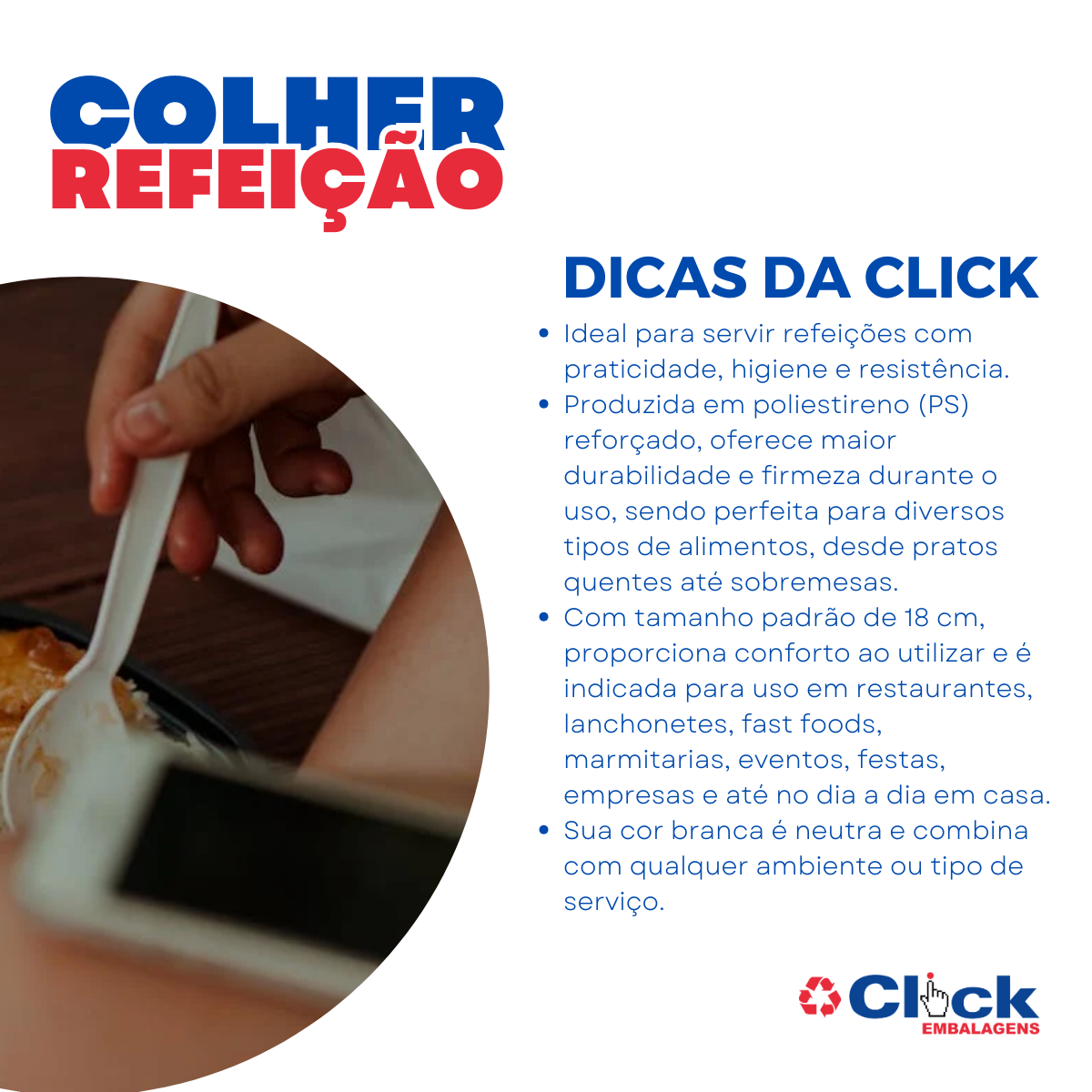 A Colher Plástica Descartável Elite é ideal para servir refeições com praticidade. higiene e resistência. Produzida em poliestireno (PS) reforçado. oferece maior durabilidade e firmeza durante o uso. sendo perfeita para diversos tipos de alimentos. desde pratos quentes até sobremesas.