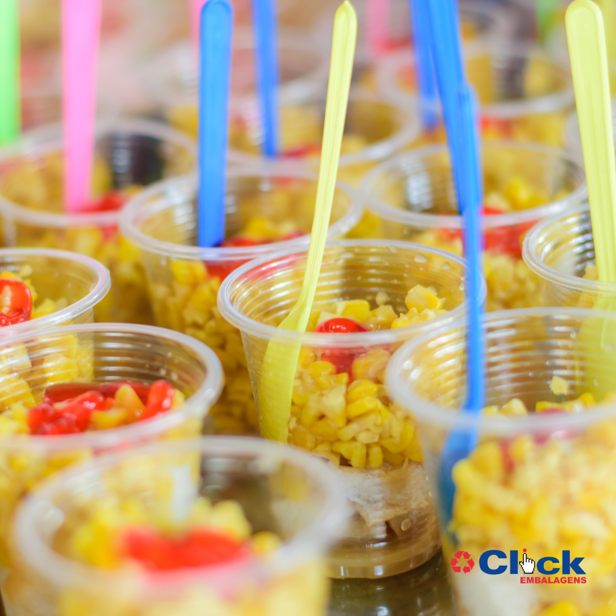 Descartável. facilitando o uso e a limpeza. especialmente em eventos e ambientes corporativos;