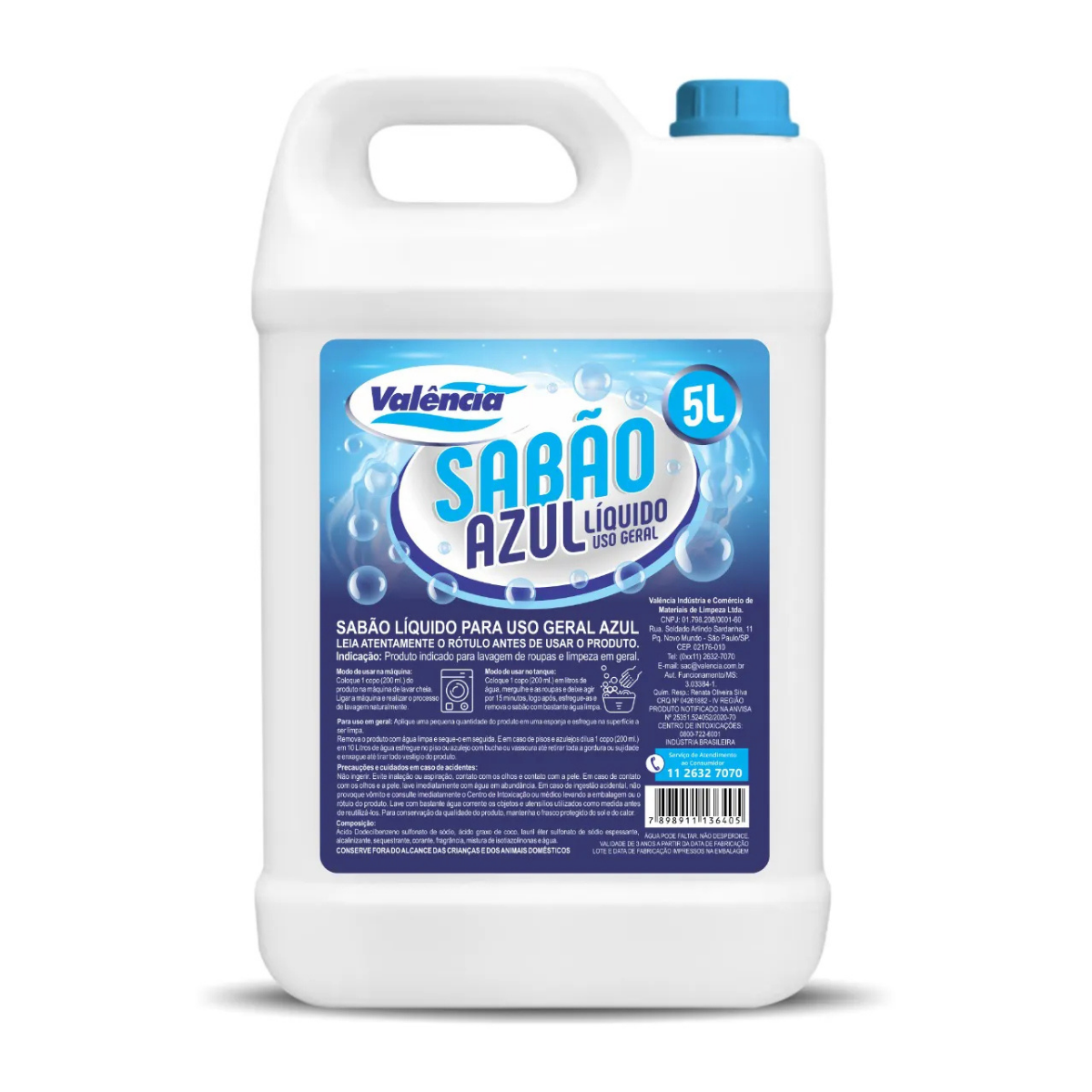 O Sabão Lava Roupas Líquido 5L Azul Valência é a escolha perfeita para manter suas roupas ou pisos impecavelmente limpos.