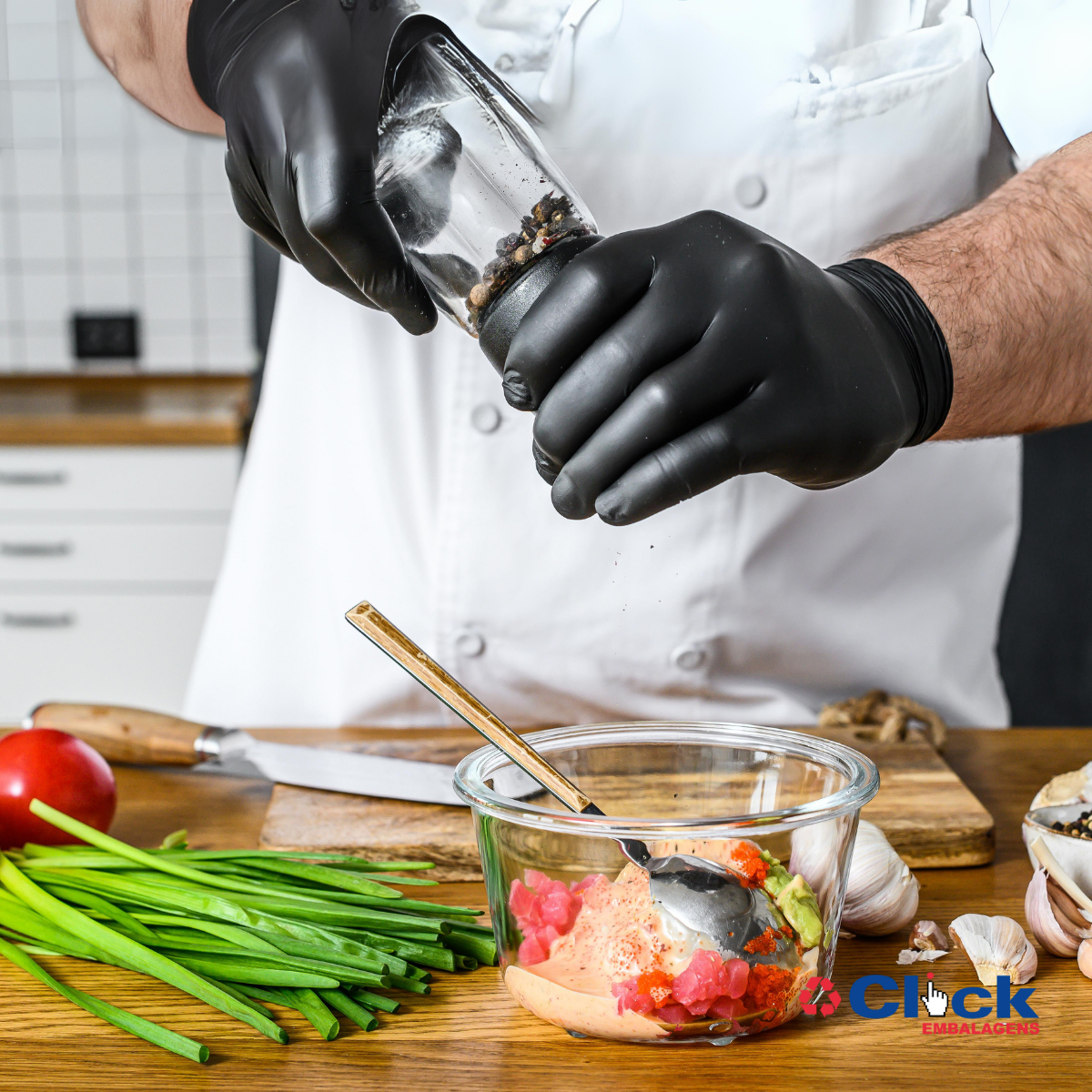 Luva Nitrílica é ideal para manipulação de alimentos em bares. restaurantes. churrascarias e lanchonetes;