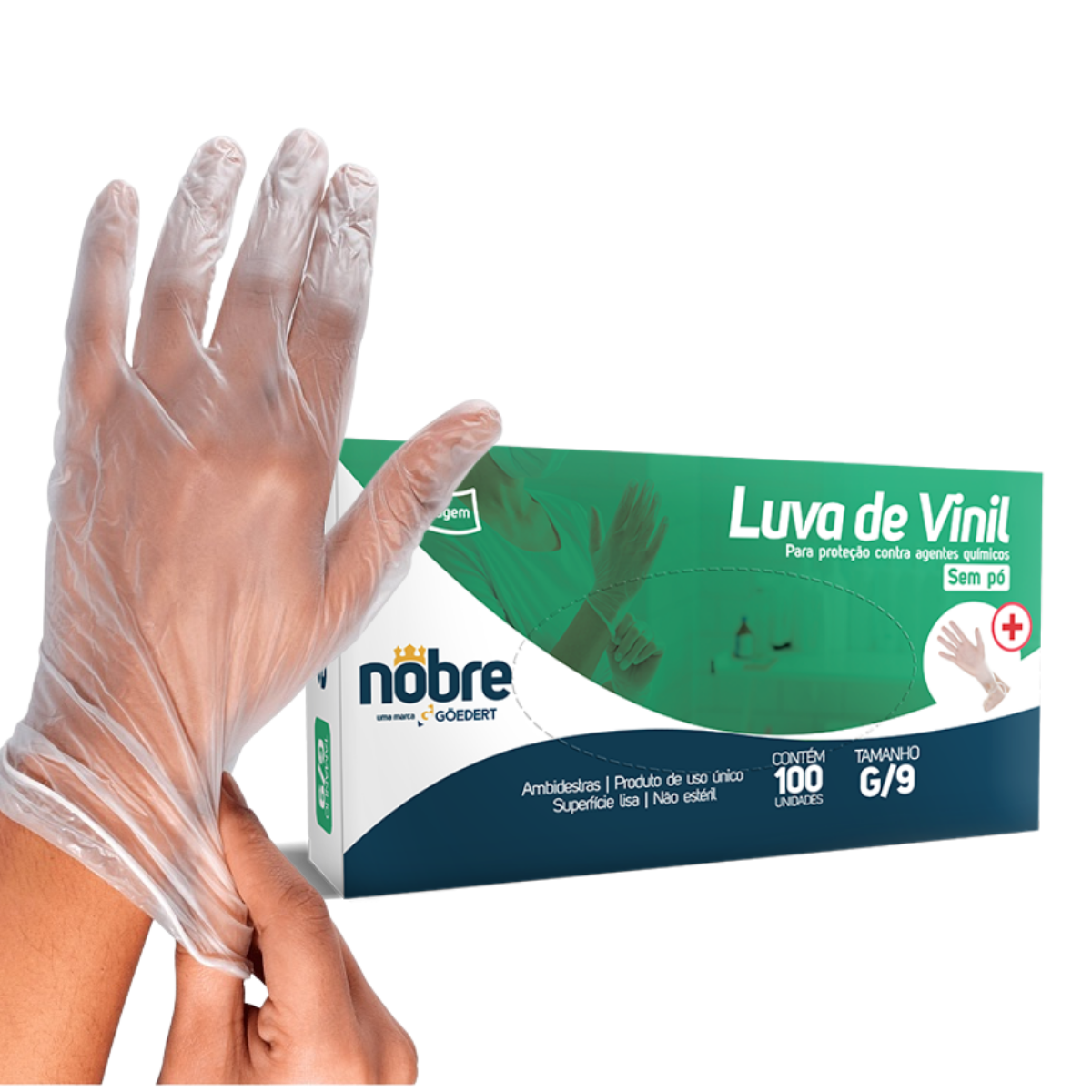 Com tamanho \"G\" (Ex. Saúde) e embalagem contendo 100 unidades. a Luva de Vinil Nobre é fabricada com material de alta qualidade que garante resistência e durabilidade. sendo uma excelente opção para tarefas que exigem proteção adicional sem abrir mão da precisão.