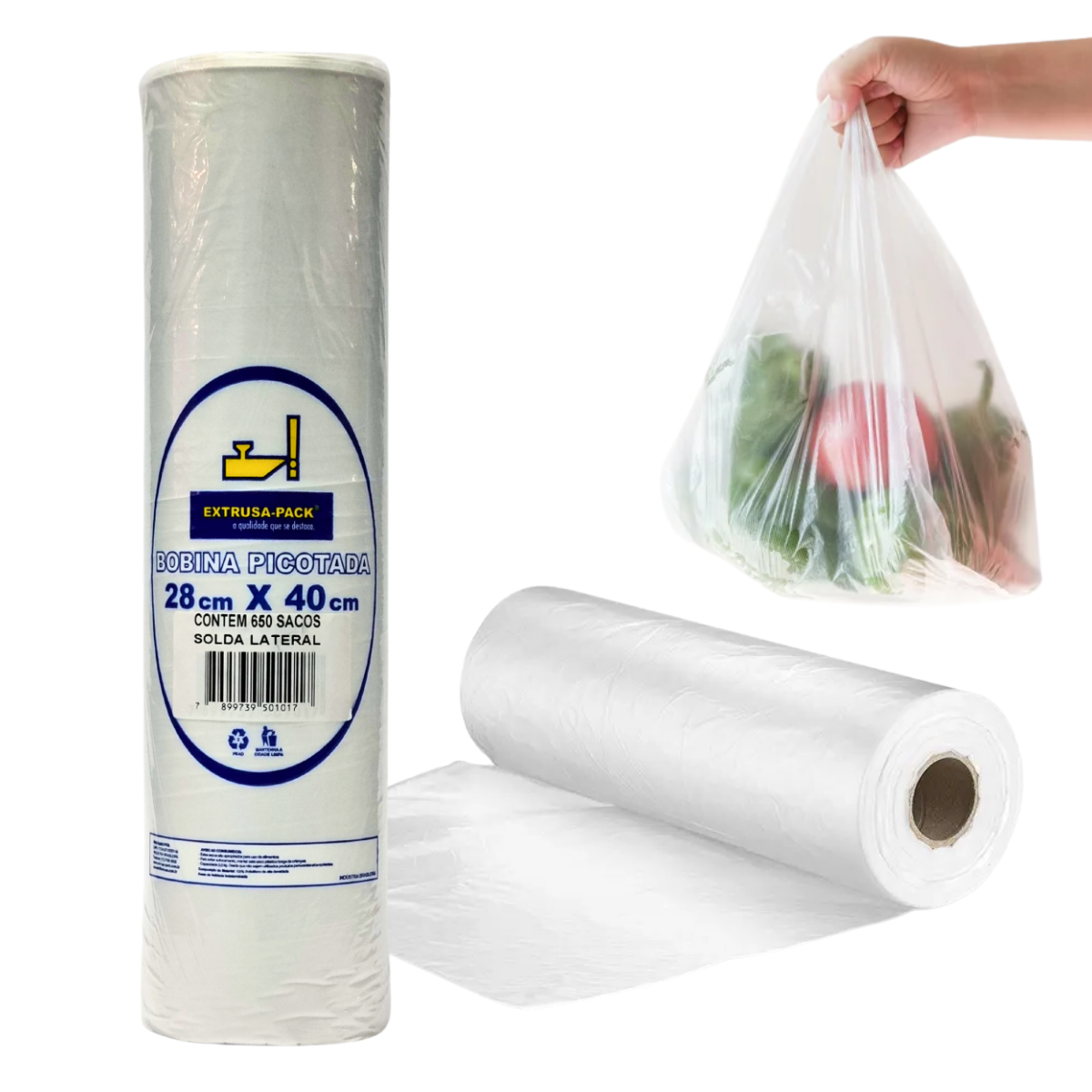 Rolo Bobina Plástica Picotada Sacos Alimentos Transparente B-SL 28x40 Extrusa-Pack - 3900 Unidades