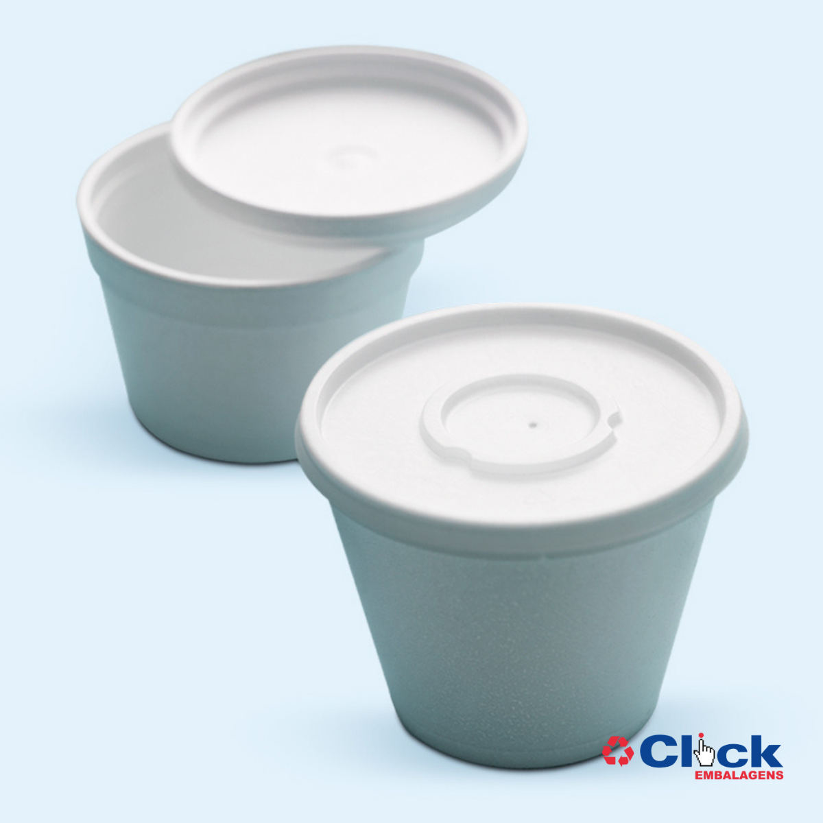 • Tampa Isopor Térmica Pote Redondo Bowl Darnel 12oz 16/24/32 oz - 500 Unidades